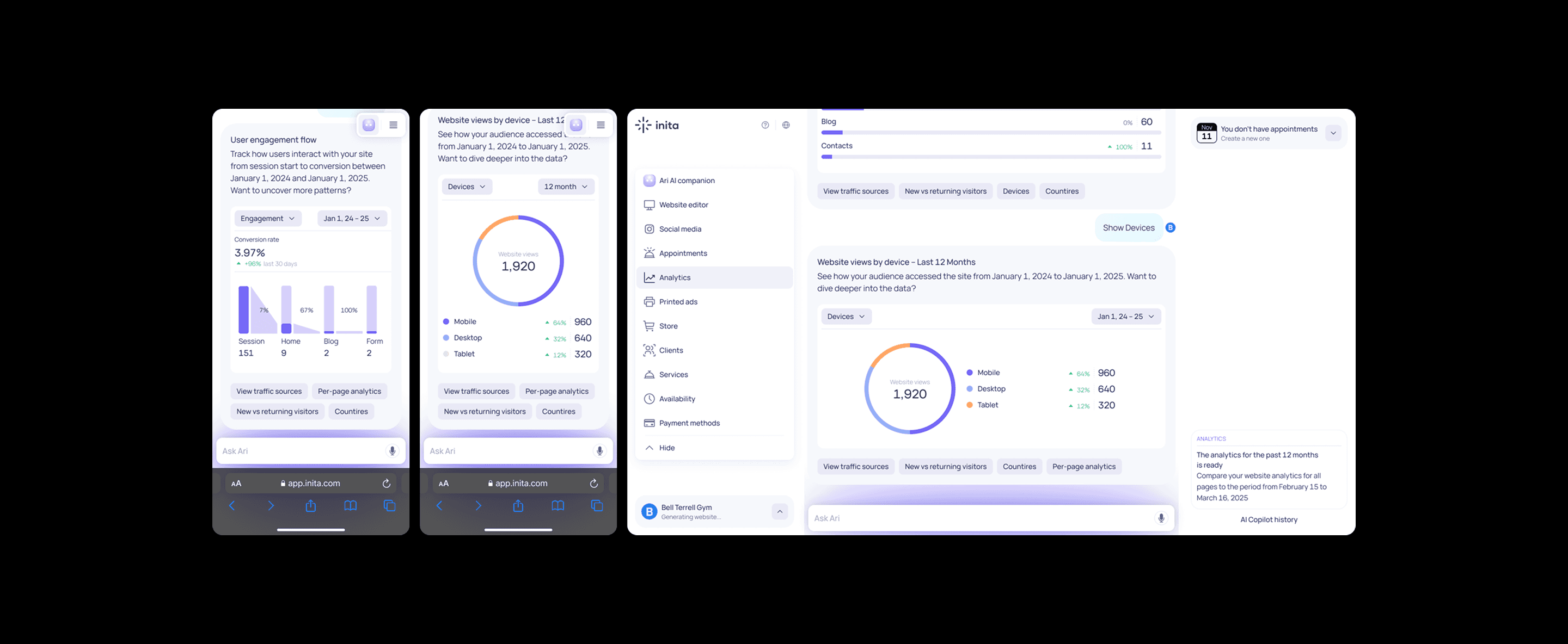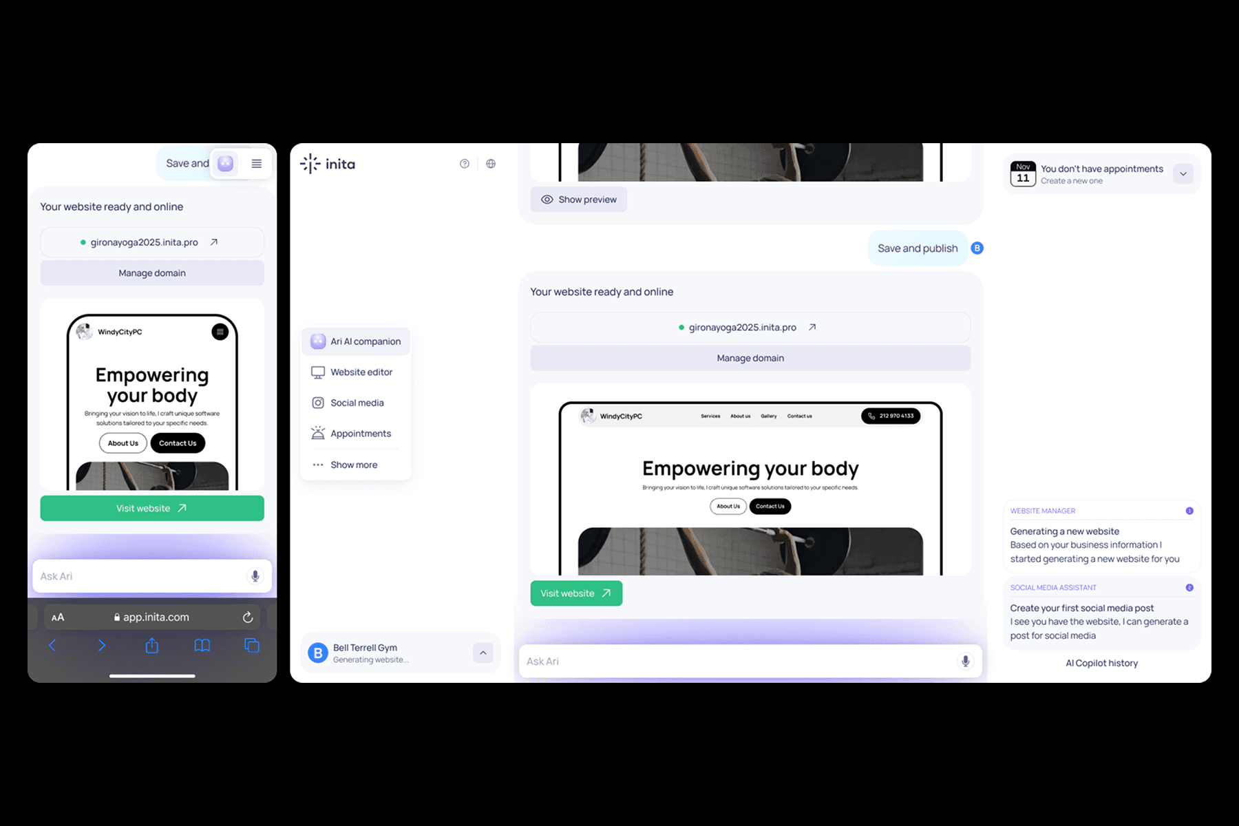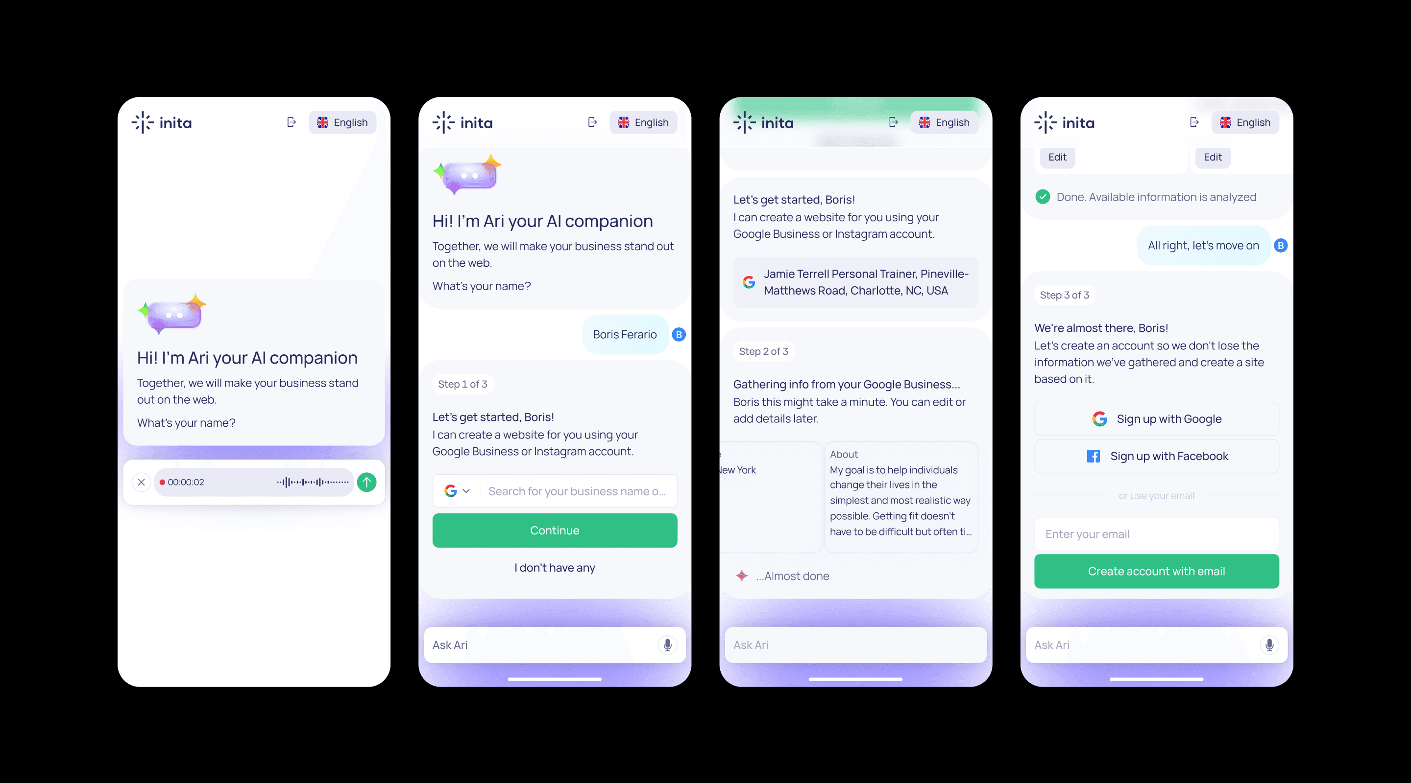 At Inita, an AI-powered platform helping small businesses create and manage their online presence, I redesigned key product flows to support natural language interaction and drive growth.